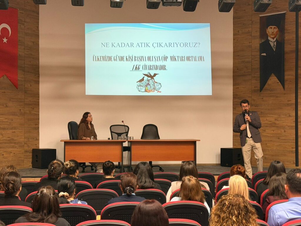 Tire Kaymakamlığı’nın talebi ve koordinasyonuyla düzenlenen programda, Hükümet Konağı bünyesindeki 11 farklı kamu kurumunun yönetici ve personeline çevre bilinci aşılandı.