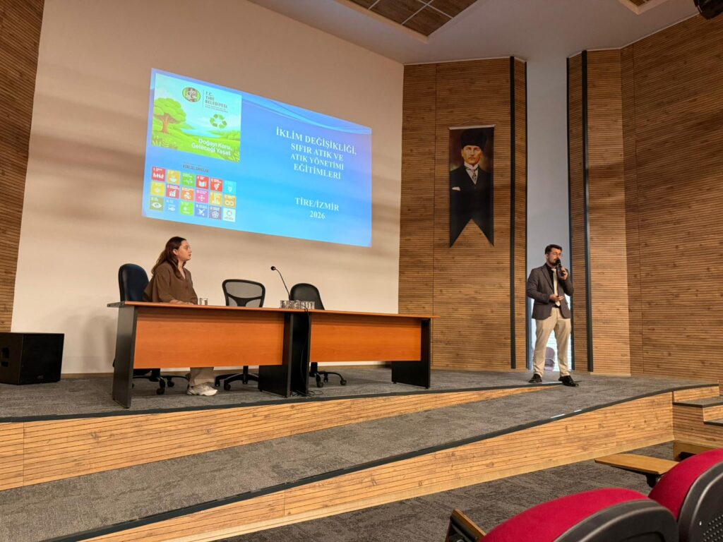 Tire Belediyesi İklim Değişikliği ve Sıfır Atık Müdürlüğü, ilçedeki çevre vizyonunu geliştirmek ve sürdürülebilir bir gelecek inşa etmek amacıyla eğitim çalışmalarına hız kesmeden devam ediyor. Bu kapsamda belediye bünyesinde görev yapan Çevre Mühendisleri Yakup Ateş, Gizem Çınar ve Yaren Çetinkal, Tire Kaymakamlığı Hükümet Konağı’nda görevli personelle bir araya geldi. Yoğun katılımla gerçekleşen “İklim Değişikliği, Sıfır Atık ve Atık Yönetimi” konulu eğitimde, çevresel krizlerin önüne geçebilmek adına yerel ve kurumsal düzeyde atılması gereken adımlar detaylı bir şekilde masaya yatırıldı.