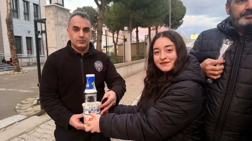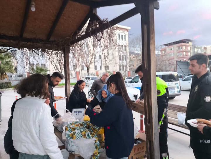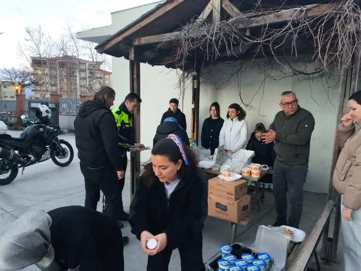 Çalışmanın ilk gününde öğrenciler, İlçe Emniyet Müdürlüğünü ziyaret ederek görevli personele iftar saatinde kumanya ikramında bulundu.