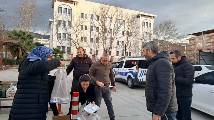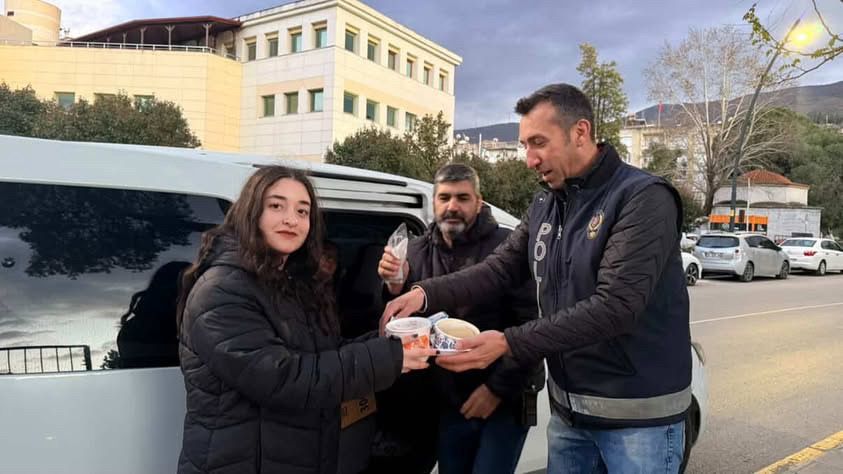 Tire’de Kutsan Anadolu lisesi öğrencileri, ramazan ayı dolayısıyla yürüttükleri sosyal sorumluluk projesi kapsamında emniyet personeline iftarlık kumanya dağıttı.